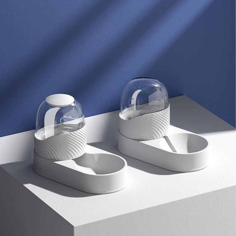 Der Wasserspender verfügt über ein automatisches Nachfüllsystem, das sicherstellt, dass der Wasservorrat stets aufgefüllt ist. Das Futter wird portioniert und bleibt frisch, während das Wasser frei zugänglich bleibt. Beide Apparate sind leicht zu reinigen und zu warten, um die Gesundheit Ihres Haustiers zu gewährleisten.